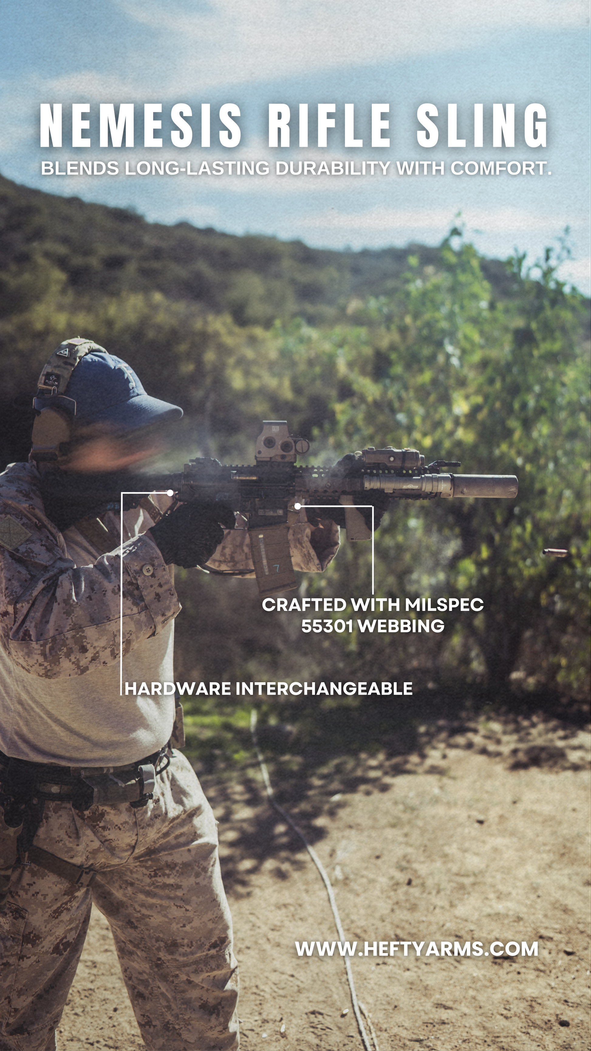 Defend yourself with confidence, or LARP the Flat Range in style with the Hefty Arms Nemesis Rifle Sling.